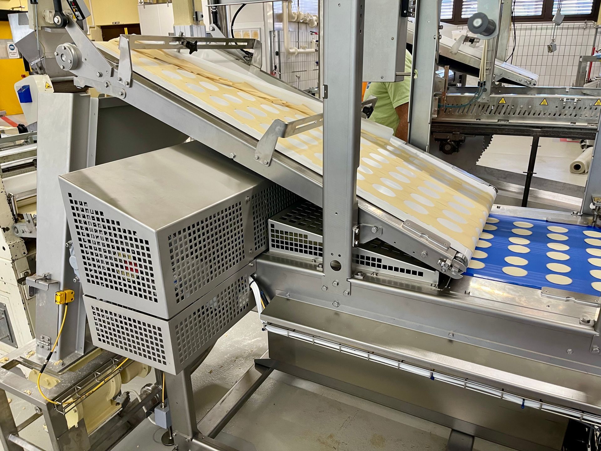 Nach dem Ausstechprozess werden die geformten Produkte automatisch an nachgelagerte Anlagen übergeben. Je nach Anwendung können die Ausstechlinge beispielsweise in einen Ofen oder eine Fritteuse transportiert und dort weiterverarbeitet werden.