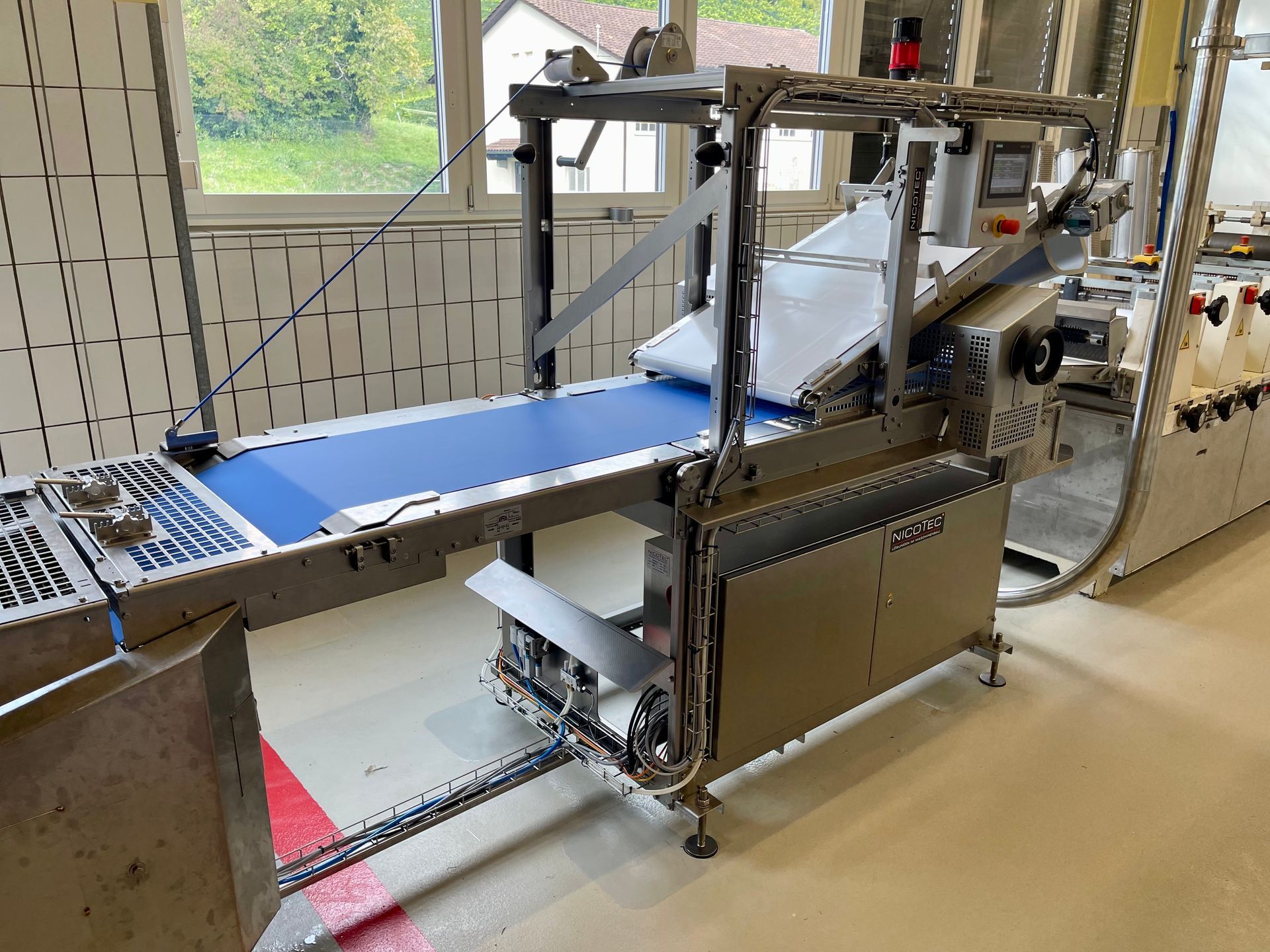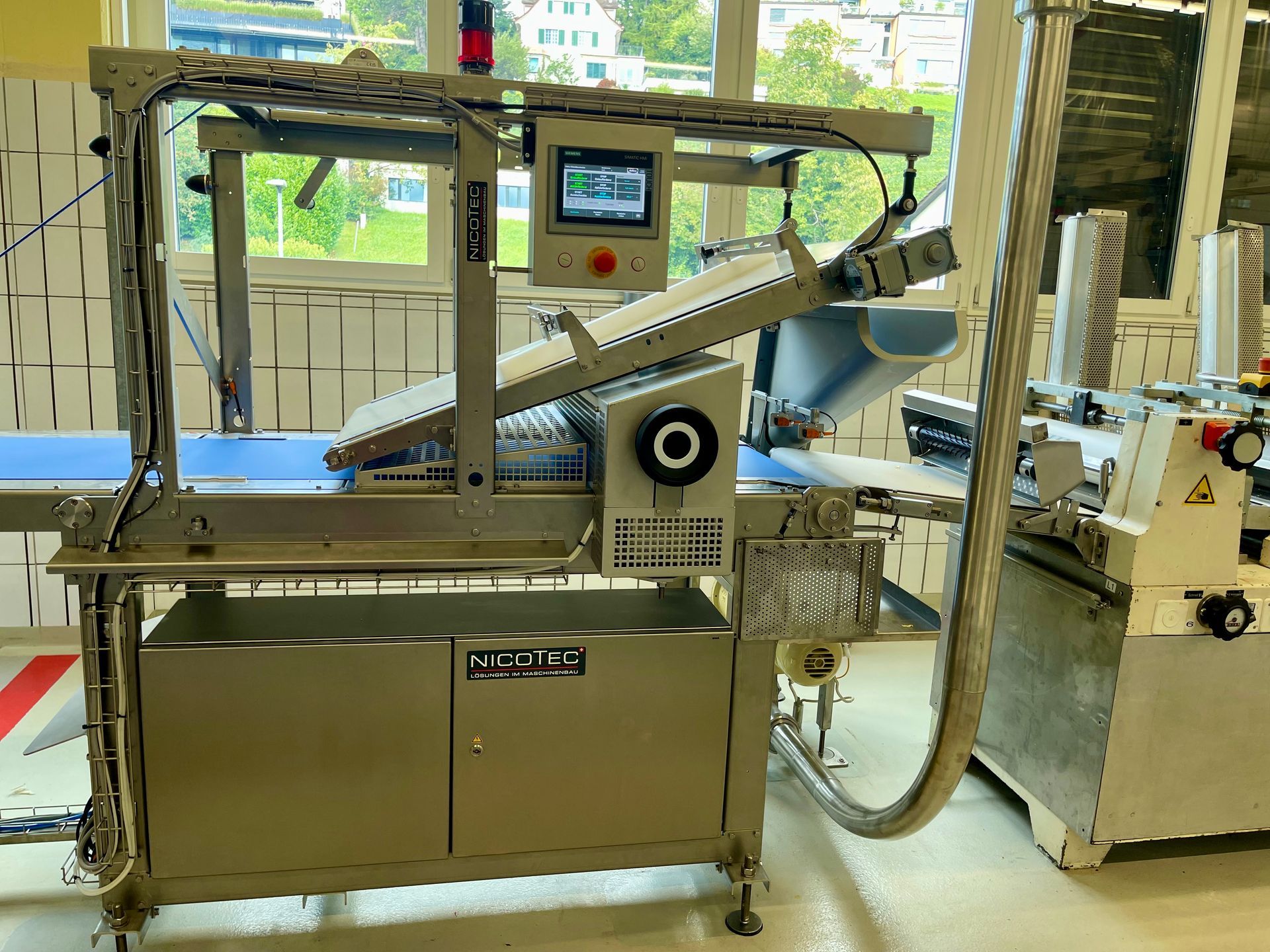 Die Ausstech-Anlage AST der Firma Nicotec ist eine speziell entwickelte Maschine zur effizienten Verarbeitung von ausgewalzten Massen, wie beispielsweise Teig. In der Anlage wird die vorbereitete Masse zunächst gleichmäßig zugeführt und anschließend mithilfe präziser Werkzeuge in die gewünschten Formen ausgestochen.