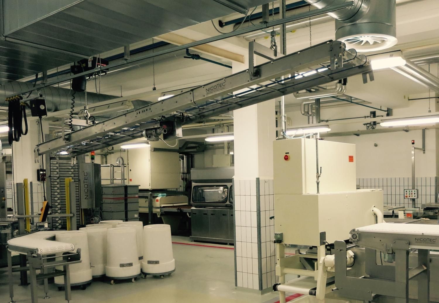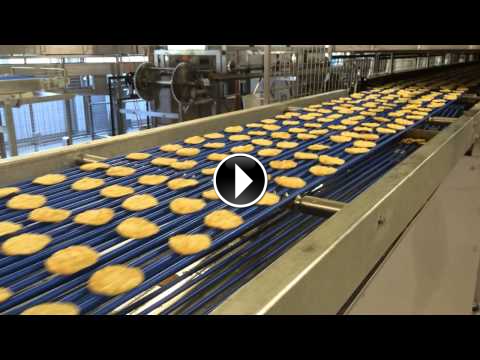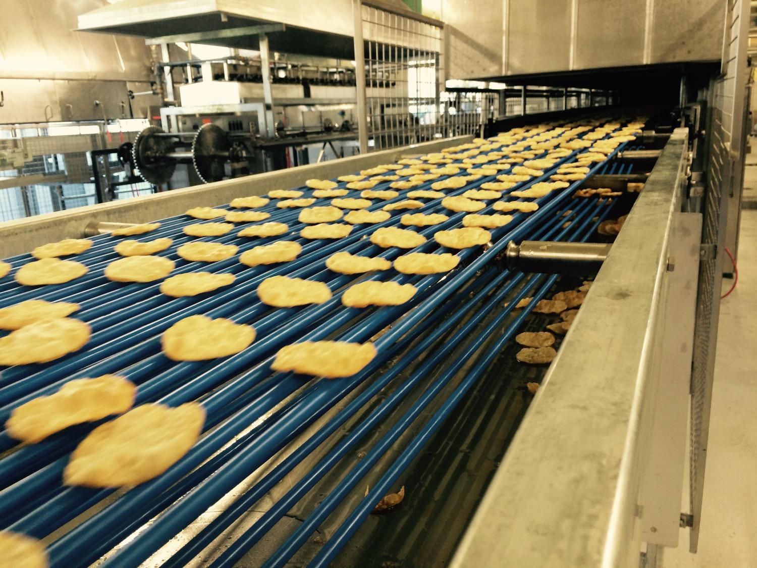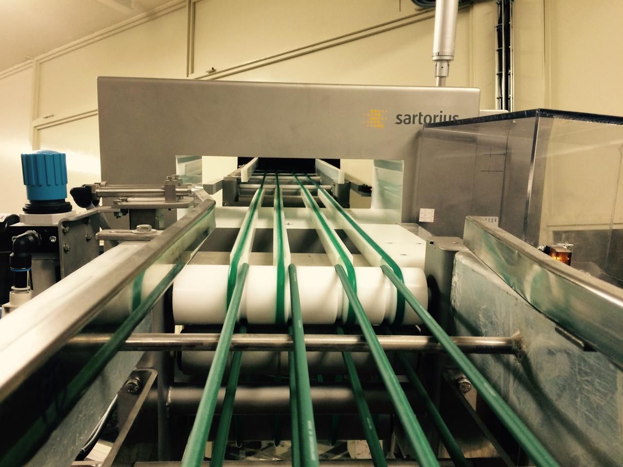 Riemenförderer mit Leerraum zwischen mehreren Riemen kommen dann zum Einsatz, wenn ein Produkt von der Unterseite bedruckt oder gestoppt werden soll. Sie ermöglichen auch das „Belüften" (Abkühlen, Erwärmen) oder das Dämpfen des Förderguts.